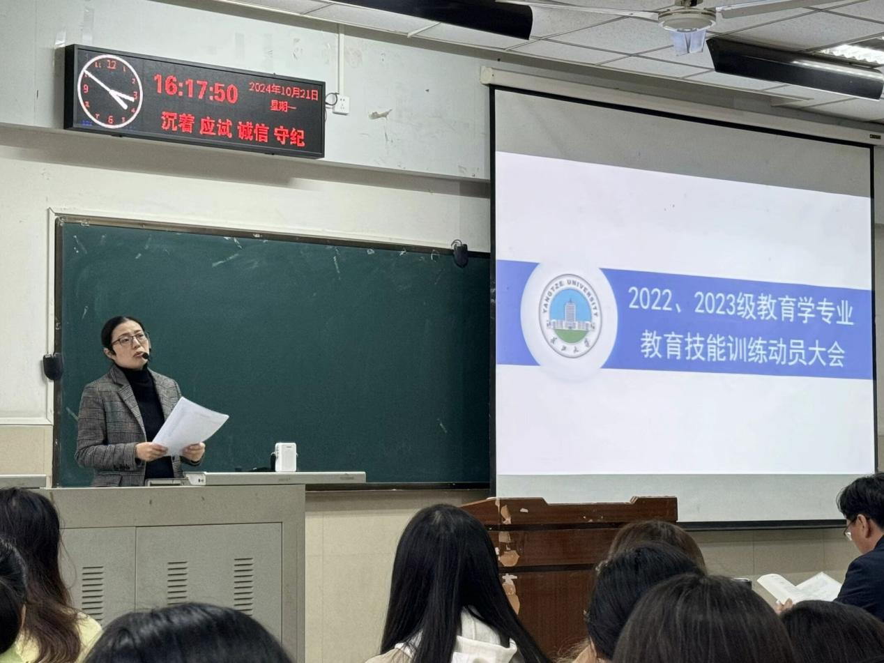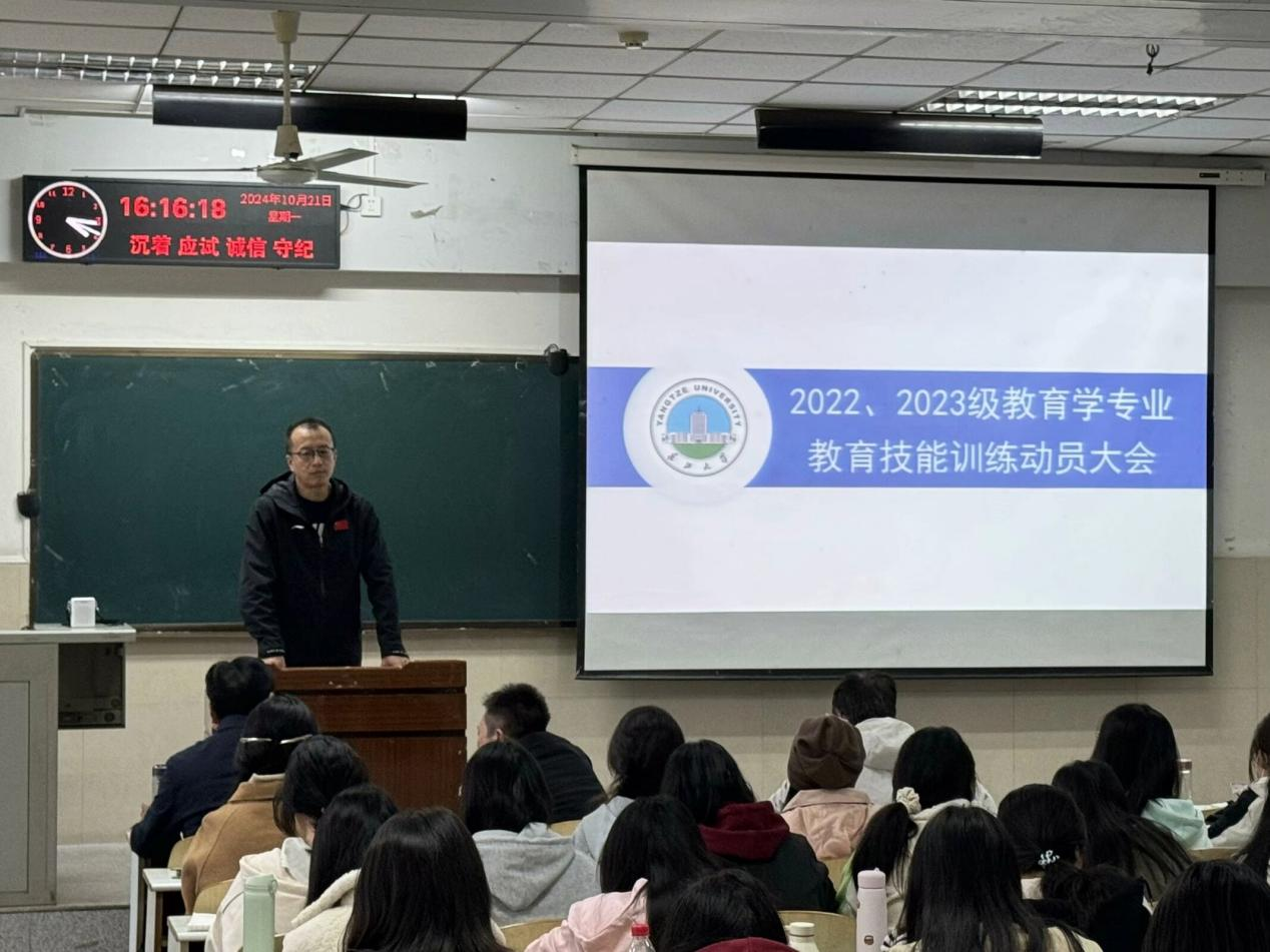 【通讯员 谷世家/文 黄方毅/摄】为夯实学生教学基础,提升教学质量。304永利集团登录入口于10月21日下午16时许,在12教102举行了2022级、2023级教育学专业教育技能训练动员大会。本次会议由周婷老师主持,304永利集团登录入口副院长杨青宝,王文静、唐青才、李红霞老师及全体2022和2023级教育类的学生参加。