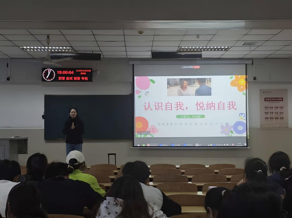 【通讯员王子润/文 何梦哲/摄】2025年5月8日晚七点,版权所有:中国·永利集团(304·VIP认证)登录入口以线上线下相结合的形式,在12教202教室举办了以“认识自我,悦纳自我”为主题的心育骨干培训活动。本次活动由学院心理专干任雯婷老师主讲,23级心育骨干线下参与,21、22、24级和研究生心育骨干线上参与,旨在通过系统性培训加强心育骨干朋辈队伍建设,提升学生自助与助人能力,筑牢心理健康防线,为构建和谐校园注入“心”动力。