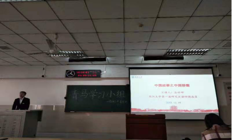 (通讯员 付雅琦)今年是新中国成立70周年,明年是全面建成小康社会之年,后年将迎来建党100周年。在这些重要的时间节点,为了激发广大同学学党史知新中国史,提高思想认识水平,增进爱国情感,激励同学们为实现“两个一百年”奋斗目标志存高远,坚定理想信念。304永利集团登录入口于2019年12月19日下午4时在东校区12教202教室开展了讲师团宣讲活动,我们很荣幸的邀请到了长江大学第一届研究生讲师团成员谷祥坤和王聪聪作为本次宣讲活动的主讲人,他们宣讲的主题是中国故事之中国骄傲和中国故事之中国“话”。参加本次宣讲活动的有研究生辅导员任雯婷老师、全体学生党员、入党积极分子和院青马学习小组成员。