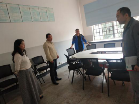 (通讯员 刘静)“能在一线解决的,绝不在会议室里耽误时间。”结合学院主题教育的工作部署要求,针对师生反映的办公室与实验室环境的问题。10月21日上午8:30分,院长张相乐、分党委书记李焕玉召集副院长喻克雄、杜光友、张艳红,办公室主任徐先荣、刘静,实验室负责人曹陈平老师一行八人,对5号教学楼每一间实验室、工作室进行查看,边走边找问题。认真查摆问题,并提出整改方案,力争早日改善教学办公环境。