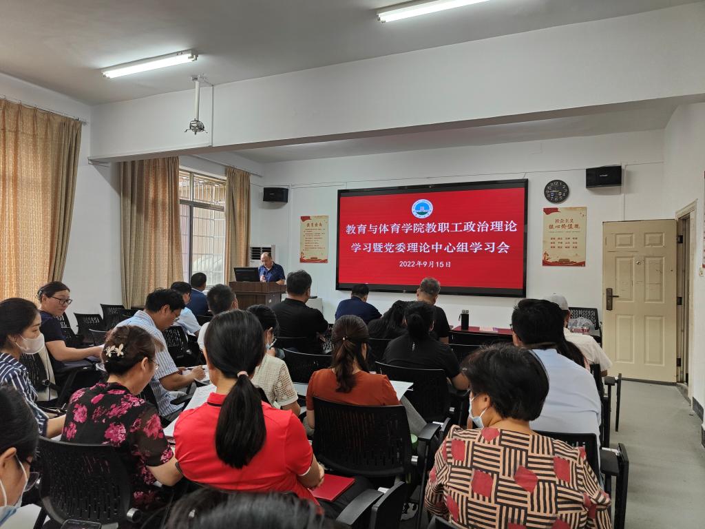 9月15日下午,教体学院在5教203召开9月份支部主题党日学习和党委理论中心组学习暨全体教职工政治理论学习会。