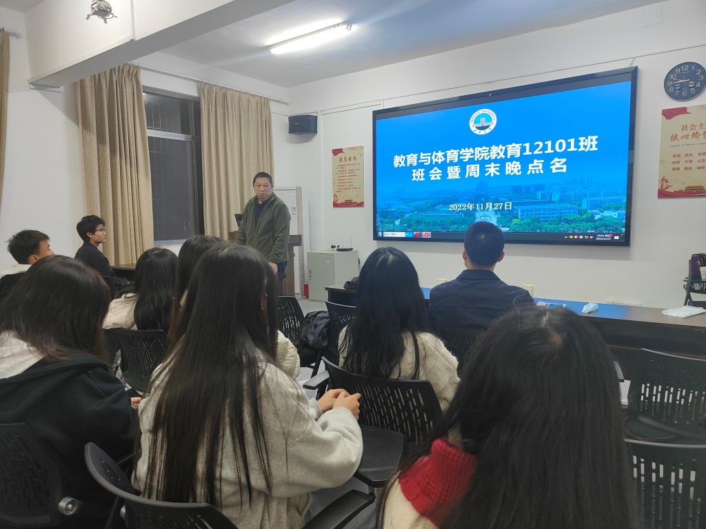 (通讯员 李梦瑶/文)为推进“一下三民”实践活动走实走深,11月27日晚上7点许,审计处处长吴劲松来到五教203,走进联系班级教育12101班,与学生面对面、听诉求、解难题。审计处时晓老师、教育12101班班主任王利方老师、教育12101班全体学生参与。