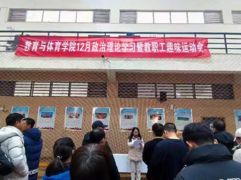 (通讯员金楚悦)12月21日下午2点,304永利集团登录入口12月政治理论学习暨教职工趣味运动会在南苑体育馆举行,我院全体教职工参与了本次活动。本次活动由我院党委书记于永伟进行主持。