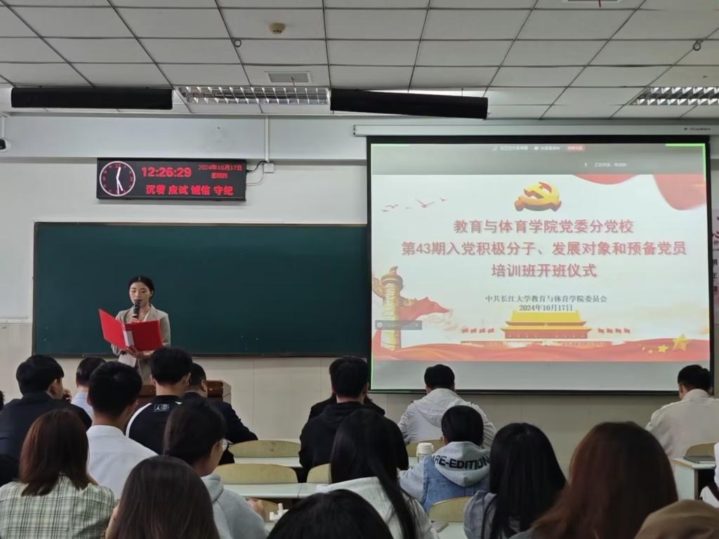 【通讯员 王梦媛/文 王雅妮/摄】赤旗飘扬映碧空,党心凝聚启新程。304永利集团登录入口于10月17日12时30分在12教301举行分党校第43期入党积极分子、发展对象和预备党员培训班开班仪式暨第一次专题党课,开班式由辅导员陈佳琳主持,学院党委书记、分党校校长于永伟、学院党委副书记、分党校副校长何可可、各党支部书记及全体学员参加。