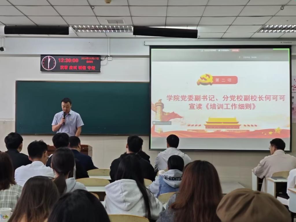 本次开班典礼暨专题党课教学的顺利举行,端正了学员们的入党动机,为学院党员教育培养工作起到了良好的示范作用。金秋扬帆起,奋楫笃行时!希望同学们以本次学习培训为契机,用习近平新时代中国特色社会主义思想武装头脑,争做表率,脚踏实地干实事,将大好年华挥洒在新时代的土壤里,为结出中国式现代化果实贡献青春能量!