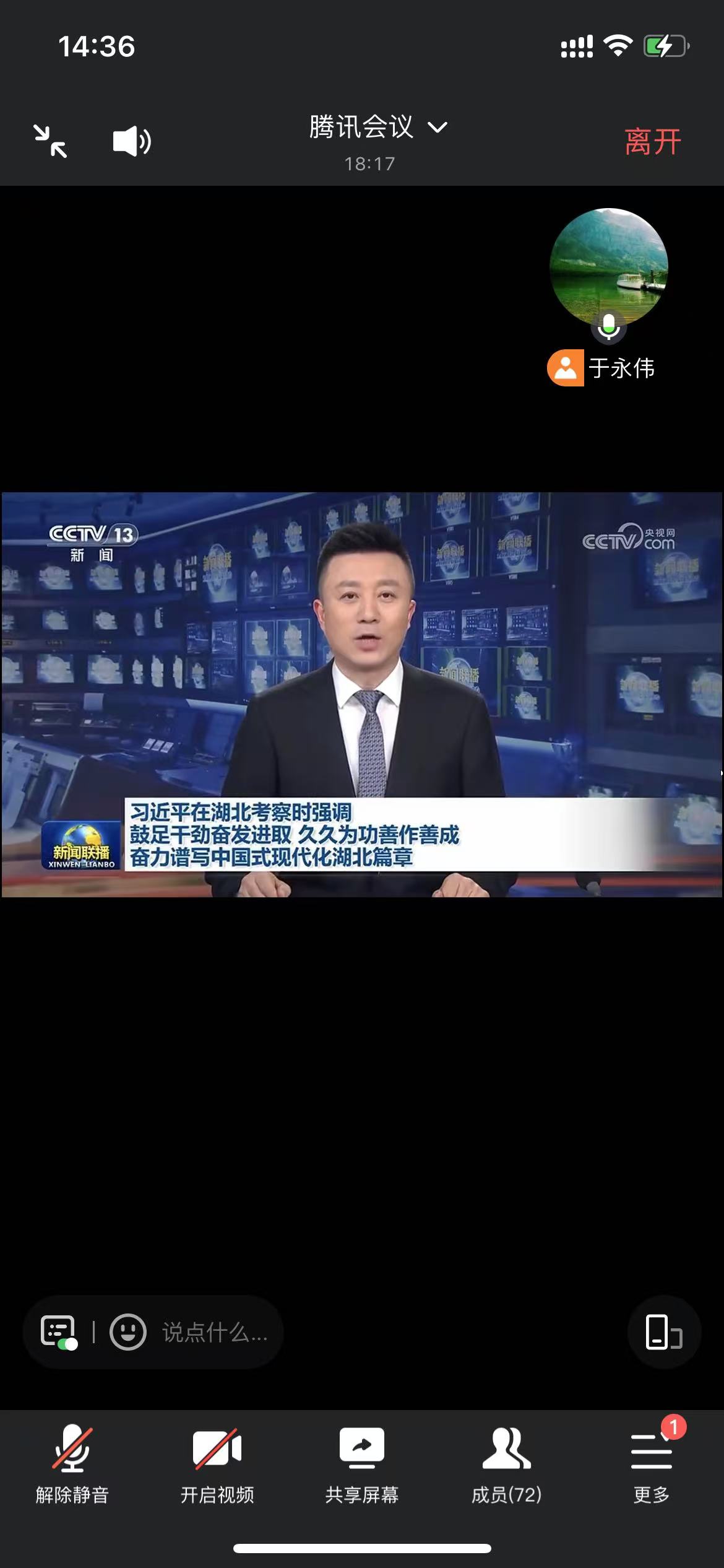 会议第二项,于永伟书记组织全体教职工一同观看了习近平总书记考察湖北的重要讲话精神,于永伟书记指出,习近平总书记的重要讲话深刻阐述了事关湖北长远发展的一系列根本性、方向性、全局性的重大问题,他强调全体教职工要充分认识习近平总书记考察湖北的重要意义,深刻领悟其精神实质,切实增强学习贯彻习近平总书记重要讲话的思想自觉、政治自觉、行动自觉,坚决把习近平总书记的殷殷嘱托转化为做好教育工作的实际行动。