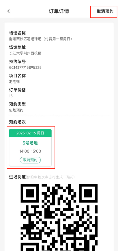 4.取消预约:预约后因个人原因无法到达准时到达场地,须提前在场馆预约界面右上角“我的预约”中找到已预约场地并主动取消预约。在规定时间内未到达场地缴纳费用管理员有权取消预约。爽约三次将进入黑名单,30天内无法预约。