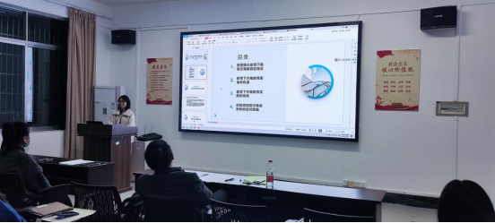 最后一位是陈军瑞同学,她就“新冠肺炎疫情下我国灾难教育的机遇和挑战”作了汇报,他首先谈到了新冠肺炎疫情下我国灾难教育的现状,再谈到疫情下灾难教育面临的机遇、其次是疫情下我国灾难教育实施的挑战、最后是后疫情时期灾难教育的应对策略。应对策略他提出了四点:制定指导纲要、开设校本课程、开展师资培训最后是整合学科资源。