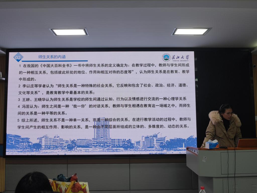 余慧玲同学对“新时代农村小学生学业成绩与师生关系、学习动机的关系”进行了研究和汇报。该研究使大家了解到当前农村小学生的师生关系现状、学习动机及学业成绩情况,并通过相关分析探讨了师生关系是如何在学习动机的中介作用下影响学生的学业成绩,丰富和拓展了相关研究领域,提升了研究的深度。基于该研究,余慧玲强调学校应弱化规训,为和谐师生提供最佳制度环境;教师应与学生平等对话;深化师生关怀交往。