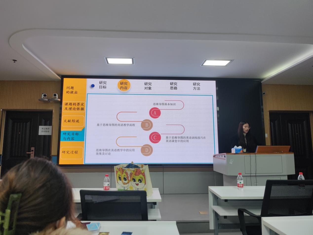 鲁茜茜同学主要研究了“思维导图在中学英语教学中的运用研究”。在实验过程中,首先将学生分为实验班和对照班并进行了前测,后续平均每个月对学生进行英语测试一次,实验研究为期一年。最终的实验结果表明思维导图对学生成绩的提高具有一定成效。在教学中可将思维导图可应用于英语词汇、语法、阅读、写作、听力、复习、板书设计以及学生作业中,这对中学英语的教学实践具有一定意义。