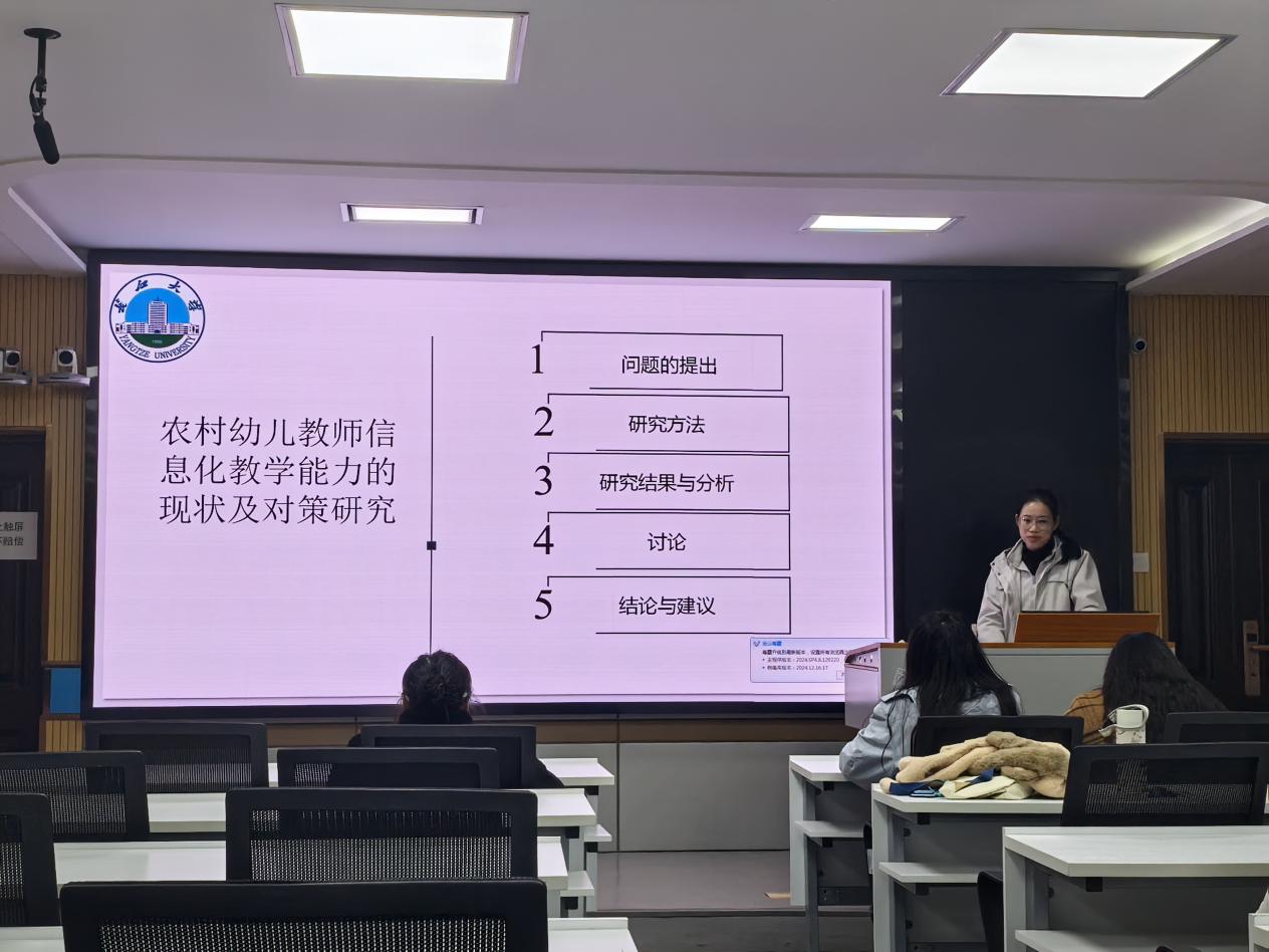 (通讯员 秦源)2024年12月16日晚,版权所有:中国·永利集团(304·VIP认证)登录入口第六届研究生学术科技节第七场活动在文科大楼910报告厅举行。本次汇报人是学前教育学方向的研究生蒋淼、胡英杰、侯晓曼、赵玉娇,304永利集团登录入口2023级、2024级学前教育专业研究生前来学习观摩。院研究生会宿建部部长周璇主持了本次活动。