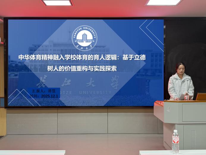 谭慧汇报的主题是《中华体育精神融入学校体育的育人逻辑:基于立德树人的价值重构与实践探索》,她立足于立德树人根本任务,强调学校体育在强化体质之余,应系统融入以“为国争光、无私奉献”等为核心的中华体育精神,以纠正当前“重技能轻精神”的实践偏差;研究阐释了体育在促进身心健康、塑造团队协作与传承民族文化等方面的独特价值,并提出通过课程设计优化、教师德育能力提升、家校社协同育人等路径,构建“体德融合”的育人体系,助力培养具有健全人格与家国情怀的时代新人。
