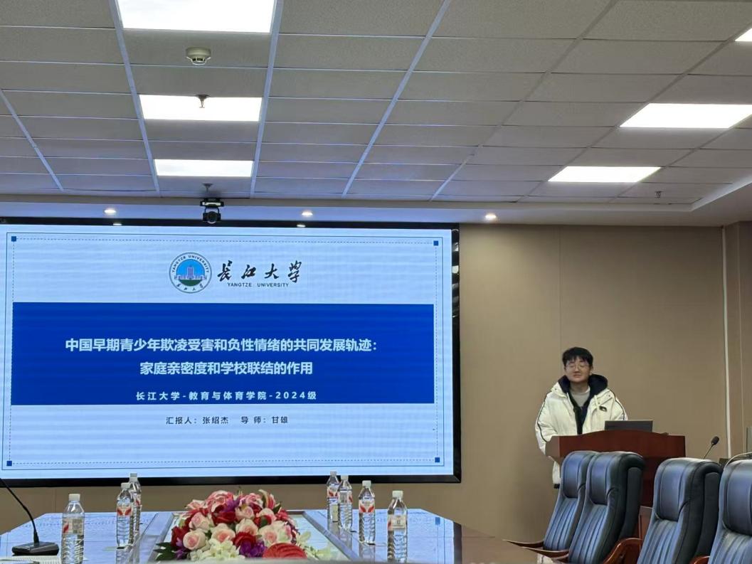 2024级研究生张绍杰同学围绕《中国早期青少年欺凌受害和负性情绪的共同发展轨迹:家庭亲密度和学校联结的作用》开展专题汇报。该研究严格遵循发展心理学理论框架,通过纵向追踪调查,系统分析了家庭亲密度与学校联结的动态发展特征,科学论证了学校联结作为关键保护性因素的重要作用,为青少年心理健康干预工作提供了理论支撑和实践参考。