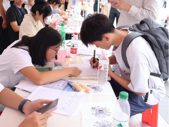 迎新开始,志愿者们身着统一的服装,精神抖擞,主动上前接过新生的行李,耐心引导新生完成线上报道、核验录取通知书和身份证、领取学生卡等环节,志愿者们为新生提供全流程帮助,辅导员、班主任、班助也在报道点,为新生及家长解疑答惑,大家以饱满的热情和专业的服务态度,迎接来自五湖四海的同学,迎新活动有序地进行着。“同学,行李我来帮你提!”“注册点往这边走,我带你过去!”志愿者们热情且关心的声音萦绕在校园的各个角落,他们的汗水浸湿了衣衫,笑容却依旧灿烂。这份毫无保留的热情像一束光,驱散了新生初来乍到的陌生与忐忑。