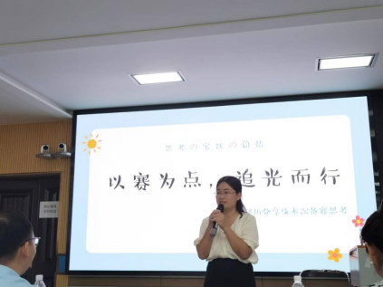 接下来,姚志艳老师以“以赛为点 追光而行——赛课经历分享及本次备赛思考”为标题分享她多次参加武汉市心理健康教育教师教学技能比赛的经验和心得。在赛课经历方面,姚老师强调以“归零”心态,每次课当公开课备课,同时要新颖切题,实现课堂与生活的衔接。关于如何备赛,她强调要了解决赛流程,读懂评分标准,遵循学生身心发展规律。最后,姚老师用无生试讲案例让我们进行点评并总结。